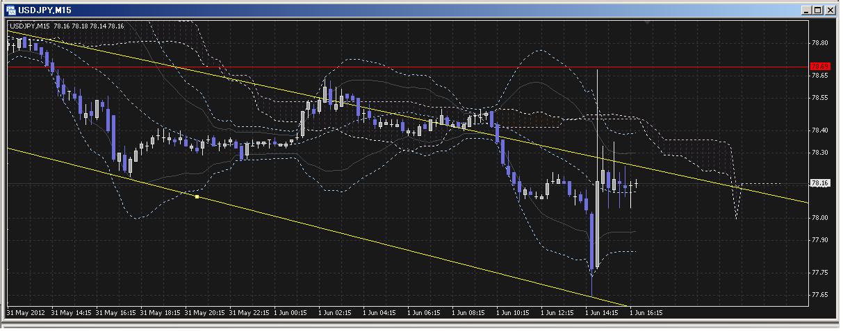 ドル円15分足で、どうしたものか、下がった後に1円ばいーーん。その後の指標も、もろもろふくめて悪いだけ。。