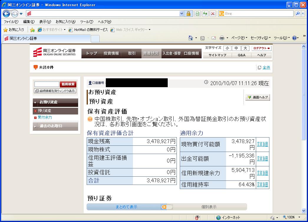 とれまが > ファイナンス > 株之助の株!デイトレード結果を頻繁に公開するブログ > 【デイトレ結果】10/07 為替が介入前の水準にの画像