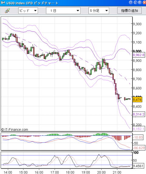 とれまが > ファイナンス > 三空の世界投資 〜FX、ダウ先物から原油まで〜 > 【CFD】10/16 再暴落!-733でダウは8000円台への画像
