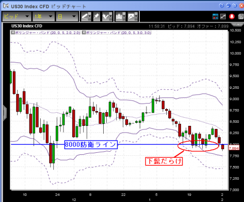 とれまが > ファイナンス > 三空の世界投資 〜FX、ダウ先物から原油まで〜 > 【CFD】2/1 8000で粘るアメリカの画像