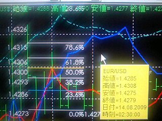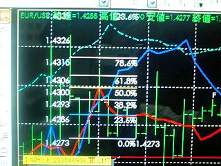 ユーロドルも、スキャルぽい感じでトレードしてコツコツ利益積み上げましたが、最後に30分のMACD下にクロスしていて自信があっあので、1.4285で成り行きで売り20枚いれて1.4310にストップと利益確定の指値入れて寝たらポジションがいました![]()