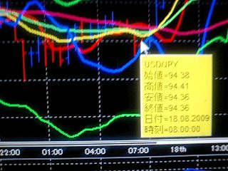 昨日は、朝かた5分チャート見てスキャルろうかと思ってドル円30枚売ったのですが、ロスカットせずに持ち越したらバイ~~~ンと上に上に持っていかれました![]()