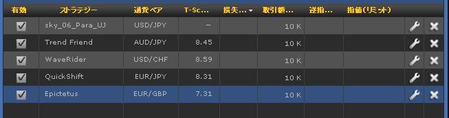 先週入れ替えたストラテジーが6回の売買を終了しています。4勝2敗で勝ち取引の方が多いのですが、ロスカット金額の方が大きく収支はマイナスでした。